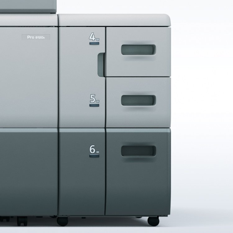3段大量給紙トレイ。最大5,000枚(1,100枚×2段+2,800枚×1段)の給紙が可能です。