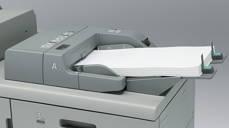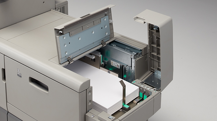 200枚×2段給紙が可能です。おもて/うら表紙、合紙挿入など、後処理の手間を低減します。オプションで重送検知*1にも対応可能です。