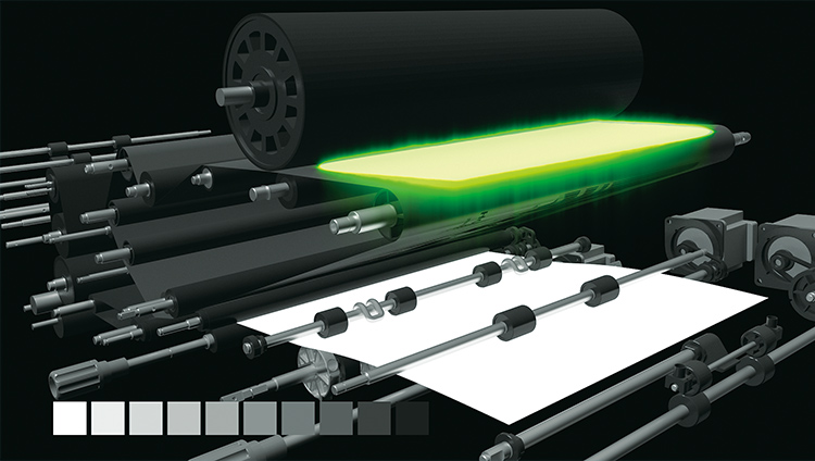 20ページ毎に濃度チェックを行ないマシンの電子制御とトナー補給制御を行なうプロセスコントロールにより、生産性を落とすことなく大量出力時でも均一な濃度を保った高品質な印刷が可能となります。