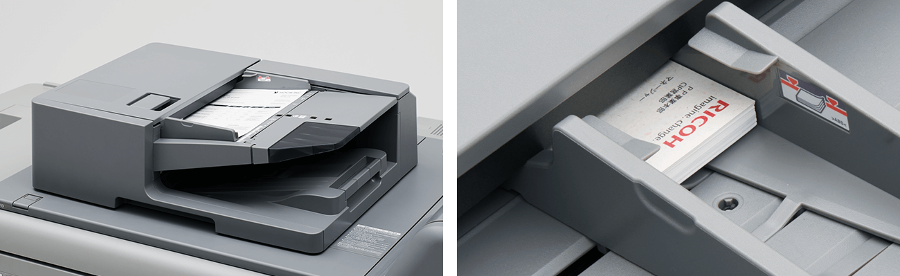 200枚×2段給紙が可能です。おもて/うら表紙、合紙挿入など、後処理の手間を低減します。オプションで重送検知*にも対応可能です。