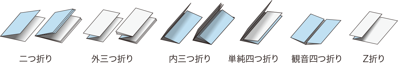 出力紙の二つ折り、外三つ折り、内三つ折り、Z折りが可能です。外三つ折り、内三つ折りは3枚まで重ね折り*できます。