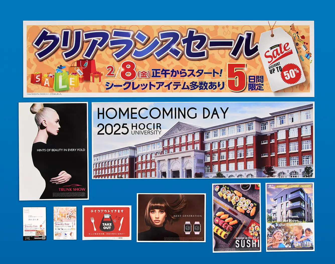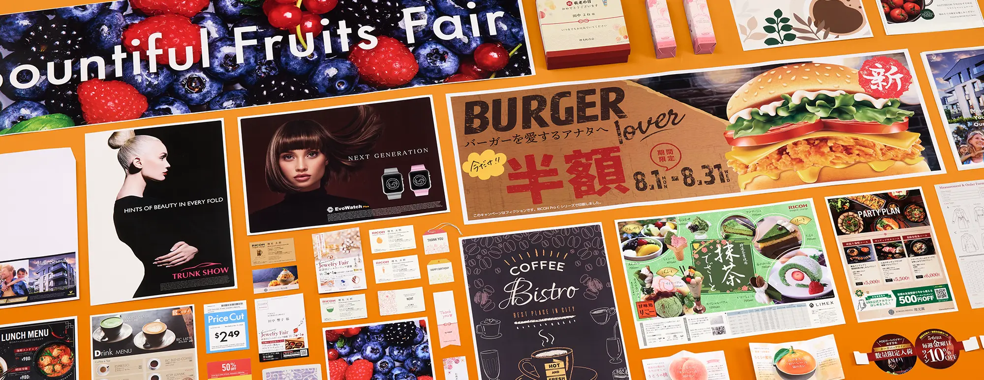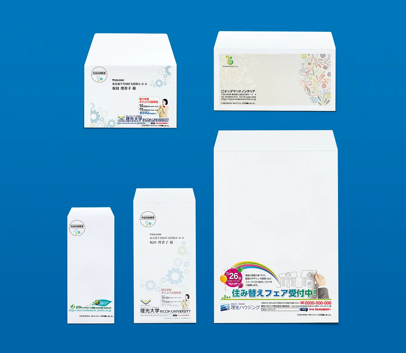 幅広い用紙サイズがあつかえることに加えて、薄紙・厚紙や封筒から凹凸紙、ノーカーボン紙などが印刷できる高い用紙対応力を備えながら、連続出力時も高画質を保つ色再現性と安定性を両立。商用印刷においてもリコーが持つ数々の技術により、生産性を向上させるとともにプリント表現をよりいっそう豊かにします。