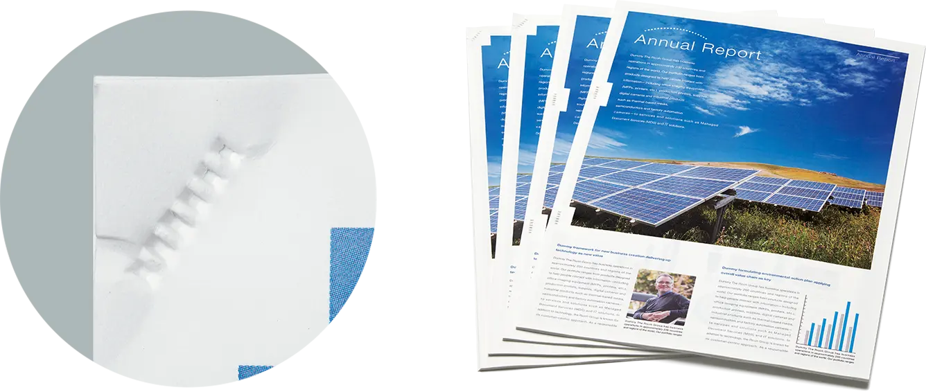 リコーのAC転写技術と弾性定着ベルトにより凹凸紙を高品位に仕上げ、多彩な商材が制作可能。さらに転写性を向上し、印刷がより鮮やかに。