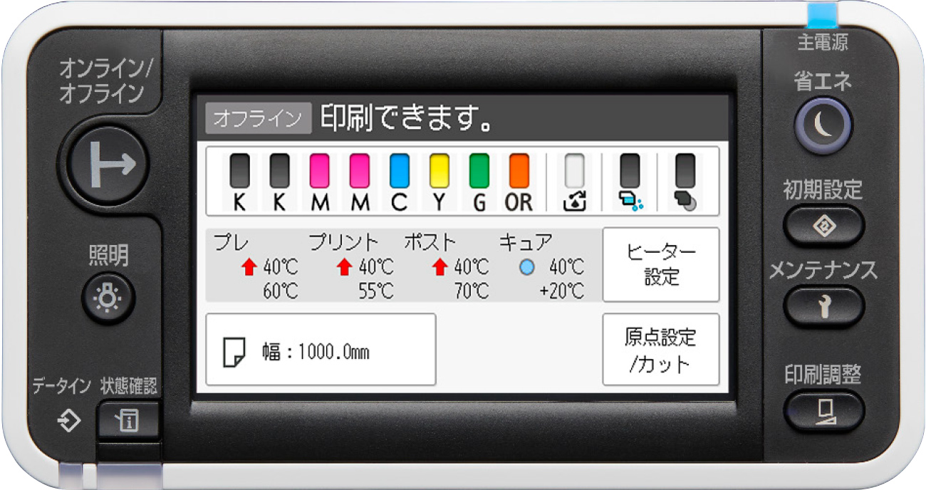 4.3インチのフルカラー液晶タッチパネルを標準搭載。テスト印刷やヘッドの高さ調整など様々な設定を画面にタッチするだけで簡単に行なえます。メディアチルト機構で操作しやすい角度に調整することも可能です。