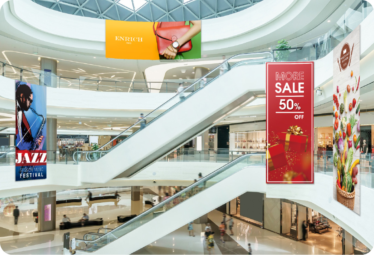 屋外用途にも最適なラテックスインクの滑らかで深みのある表現が、バックリット看板などをより魅力的にアピールします。