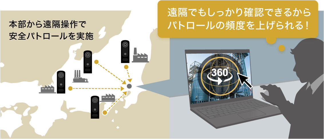 遠隔操作で自由に画角を選べ、見逃しのない安全パトロールが可能。現場あたりの立会者を減らしつつ、パトロールの頻度を上げることができます。