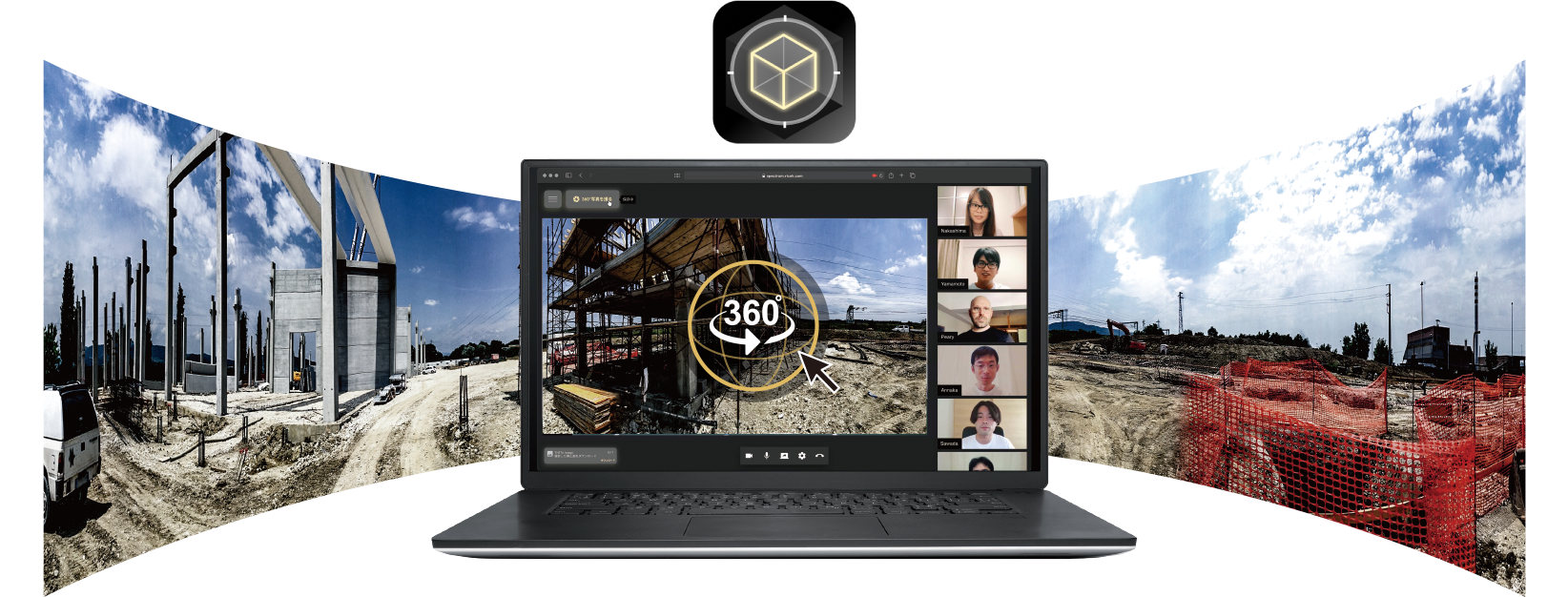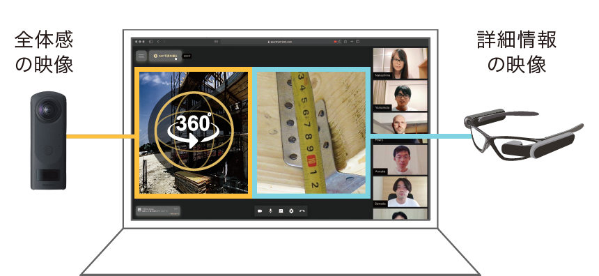 RICOH THETA で360°映像を撮影し、オフィス側ではブラウザ上で見たい画角を選択可能。