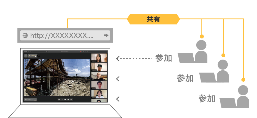 ルームのURLリンクとパスコードを相手に共有するだけで、すぐに参加できます。