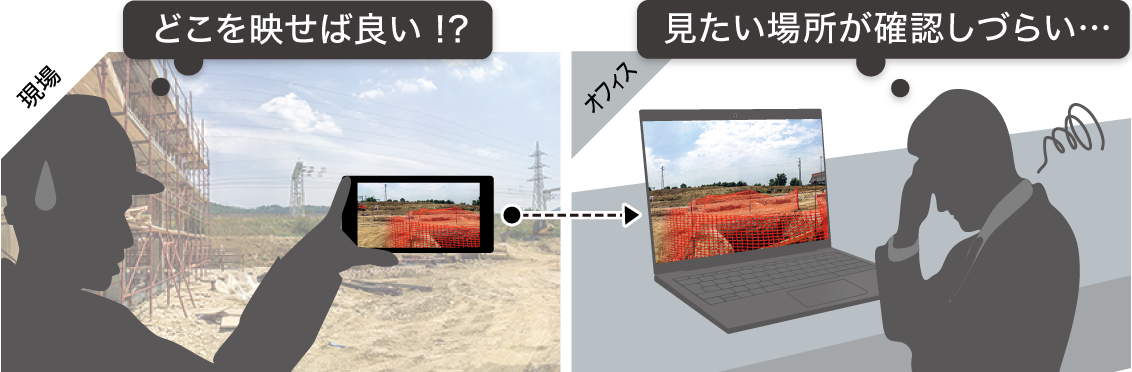 「カメラの画角が限定されているため、現場の見たい場所の確認がしづらく、遠隔臨場の実施がむずかしい・・・・・・」