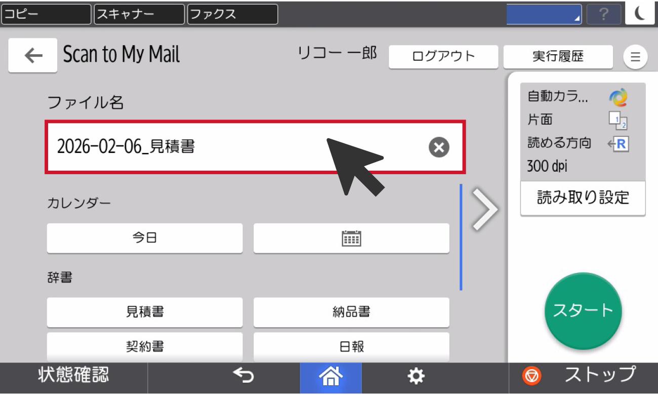 | ファイル名設定 | 履歴を含む /入力可能/ デフォルト日付(時分秒) | |