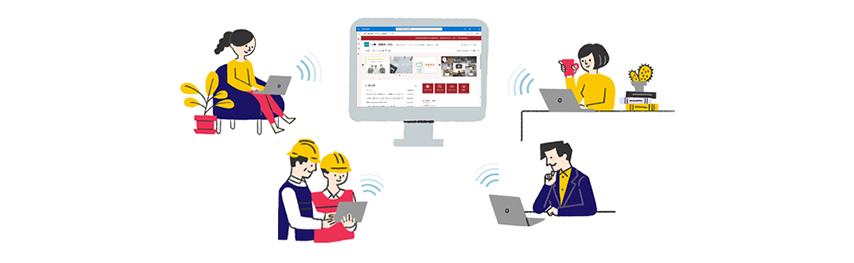 業務報告は場所を選ばず簡単に共有。チームメンバーの状況を、いつでも把握できる。上司もチームメンバーも、みんなが同じオフィスで仕事をするような感覚を実現します。