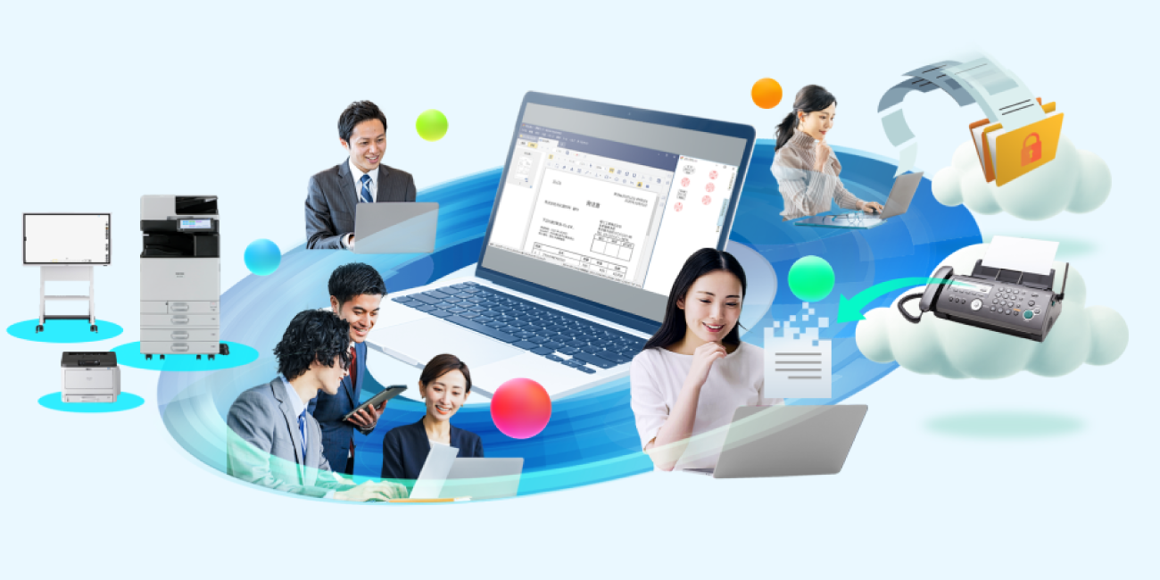 優れた操作性で好評の専用ドキュメントポータルソフト『RICOH Desk Navi』の利用ライセンスを5ライセンス添付。導入後すぐにご利用いただけます。