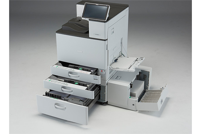 標準で590枚×2段+手差し100枚の計1,280枚*の給紙が可能。さらに、オプションの組み合わせにより最大5,030枚*の大量給紙を実現しました。多彩な用紙サイズでの大量出力業務を強力にサポートします。