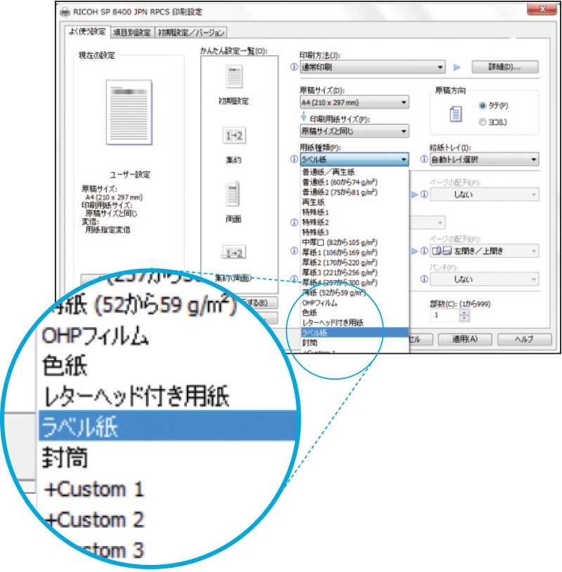 用途に合った用紙種類を選び、ユーザー用紙種類として独自の名前をつけて登録・選択・印刷することができます。印刷時にドライバー上から出力したい用紙を簡単に見つけることができますのでスムーズなプリントが可能です。