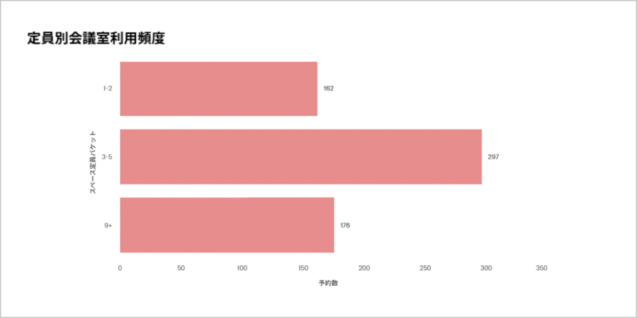会議室の利用数の傾向を分析できるので、会議室の広さと室数のバランスを最適化できます。