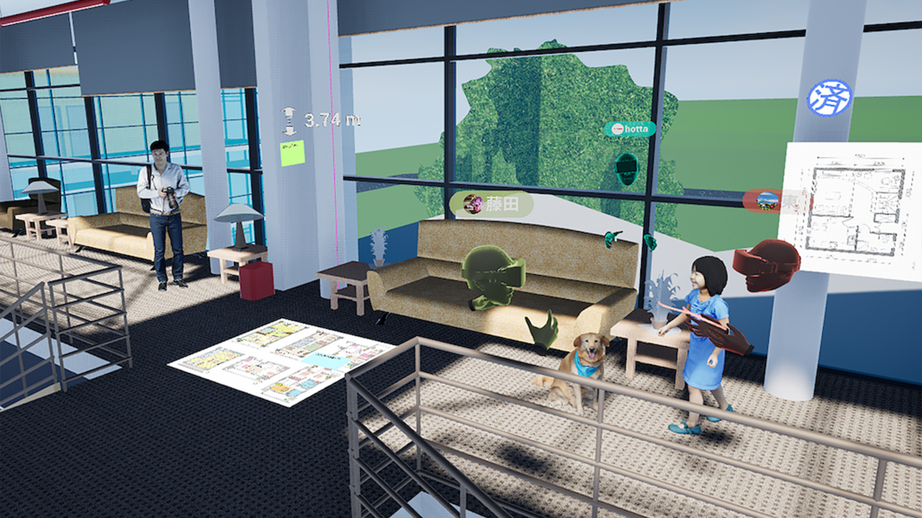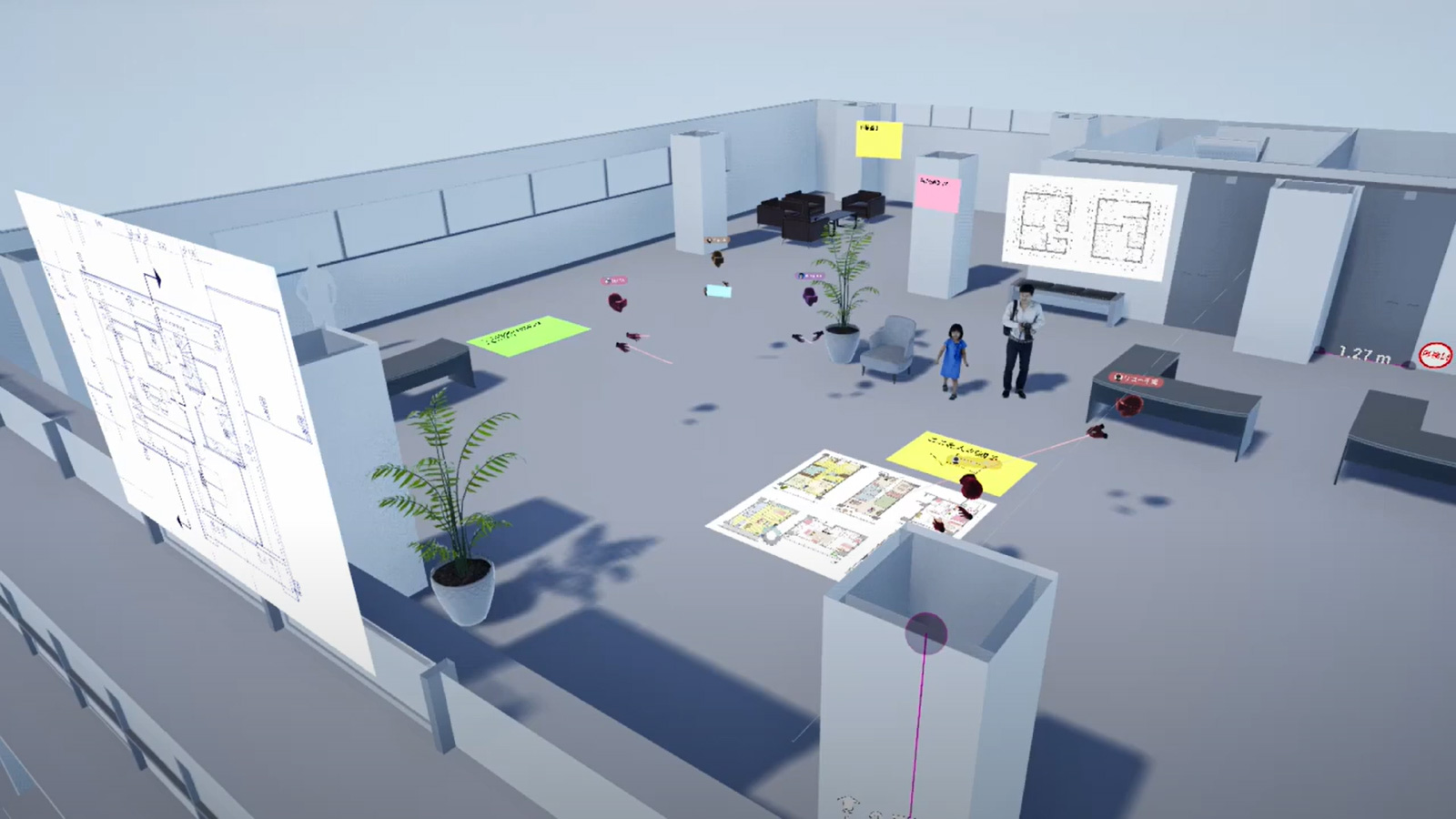 仮想空間で実際のスケール感や距離感をつかめます。遠隔地からでも、複数人でログインでき、クライアントなどに完成イメージをより正確に共有できます。
