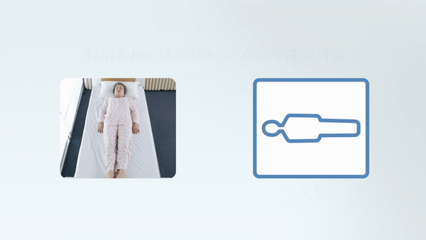 8種類のアイコンで、動き出し・起き上がり・端座位・離床などの行動を表示します。