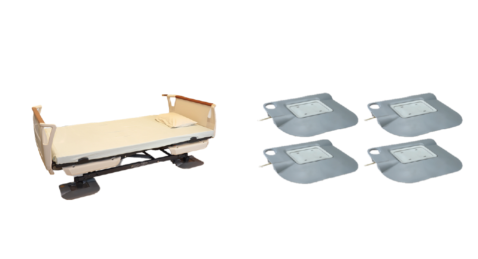 ベッドの脚に設置した荷重センサーが利用者様の状態を検知します。