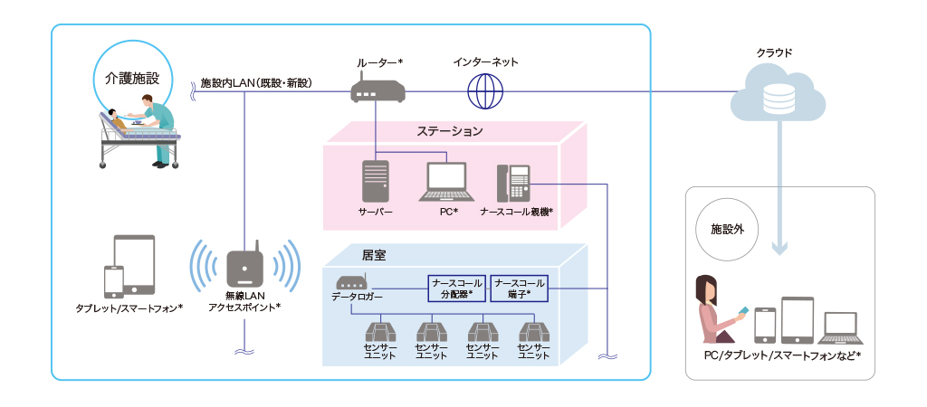 ※クラウド接続のためにインターネット回線、施設内LAN(有線/無線)環境が必要です。