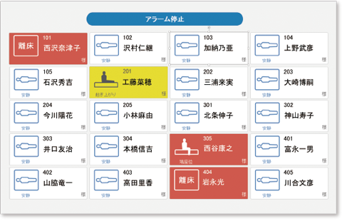 | 同時見守り | 最大20床を1画面に表示可能、グルーピング表示可能 | |