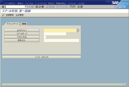 スプール管理:第一画面から[出力デバイス]を選択してください。
