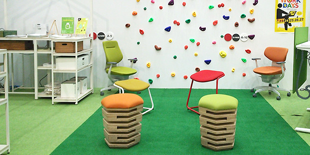 ストレッチや健康意識を高めるアイテムを集めたスペース。コミュニケーションも行え、健康経営をカタチにしたエリア。