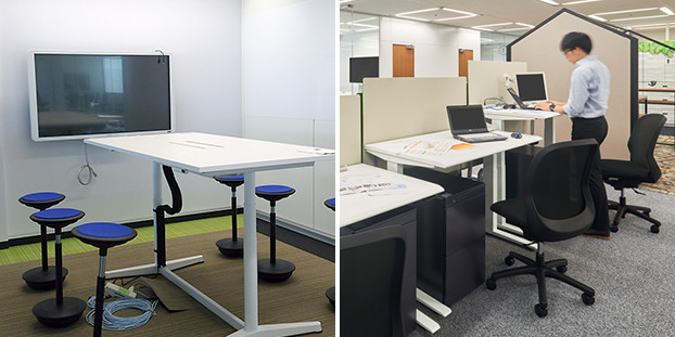 導入により、座っているよりも声をかけやすく、コミュニケーションを活性化。