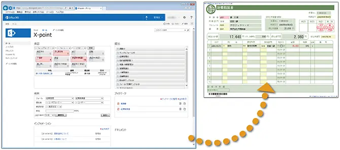 SharePointへのWebパーツ表示、シングルサインオンが利用できるようになり、ビジネスに必要な書類やワークフローの情報が「SharePoint」及び「SharePoint Online」に集まります。