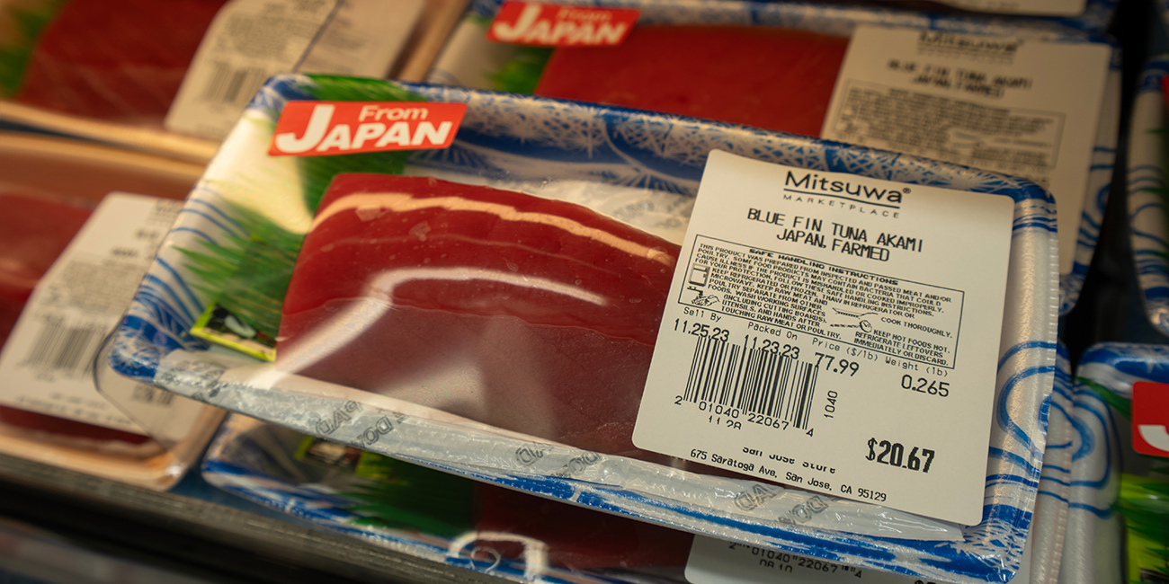 お惣菜やお弁当、食品のパックケースに貼り、名称・価格・内容量・製造日・賞味期限、バーコード等を表示するラベルです。