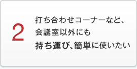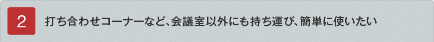ミラー反射式超短焦点プロジェクターにおいて、世界最軽量の質量約3.0kg*を実現。簡単に持ち運びでき、打ち合わせコーナーなどでも共有プロジェクターとしてご利用いただけます。
