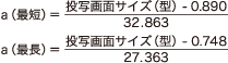 aはレンズからスクリーンまでの距離(m)で、0.89m~10.93mの範囲に対応します。