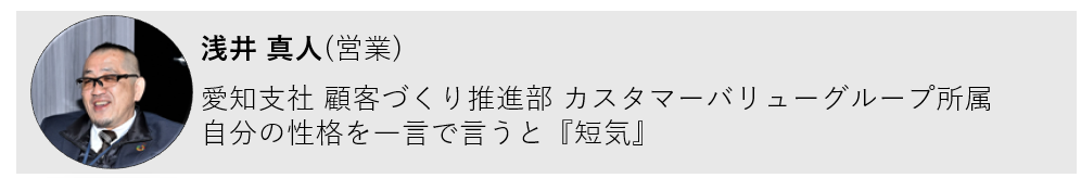 最近は、いかにして会社を良くしていこうかということを、上層部だけでなく若手メンバーも含めて改革をしているところが、愛知支社の良いところだと思います。今後、より良い会社になっていくと良いなと思います。