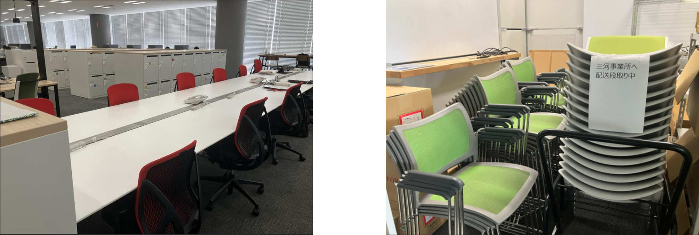 実際のリニューアル工事に入る前にも、何度か断捨離を実施し書類や備品の削減による、スペース創出も行いました。