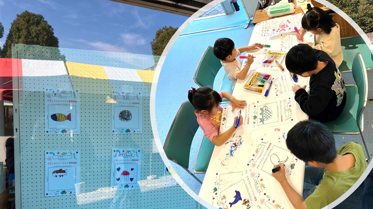 ブースの様子:紙アプリに使う絵を描いてもらいました