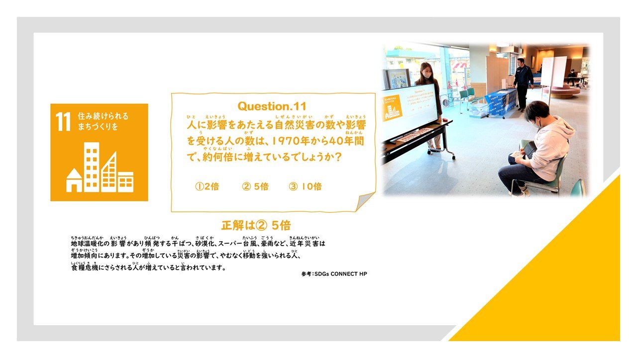 ブースの様子:SDGsのクイズ(ゴール11住み続けられるまちづくりを)