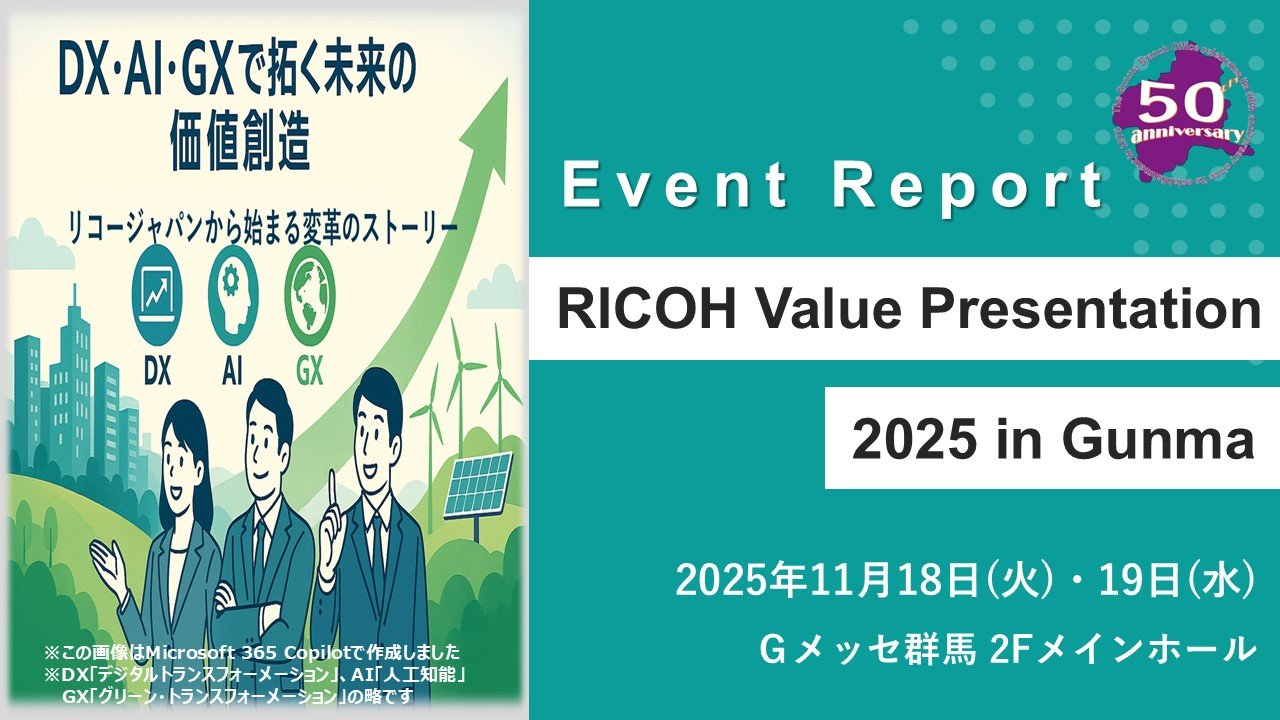 2025年11月18日・19日にGメッセ群馬で開催いたしました「RICOH Value Presentation 2025 in Gunma」についてご報告いたします。