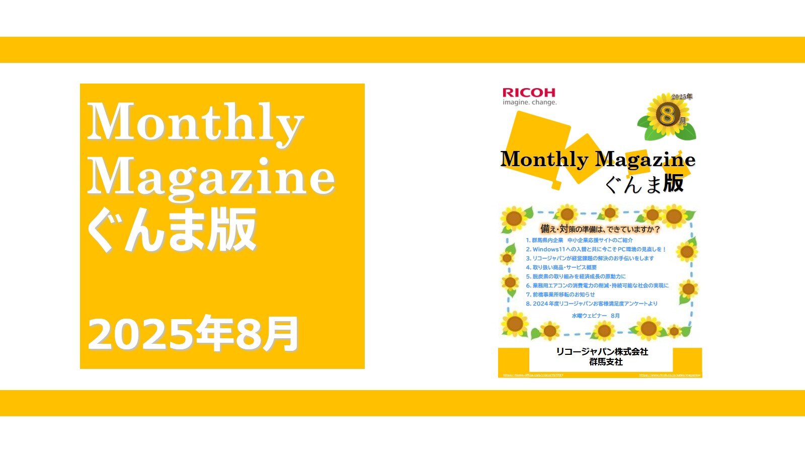 2025年8月「Monthly Magazineぐんま版」のご紹介です。