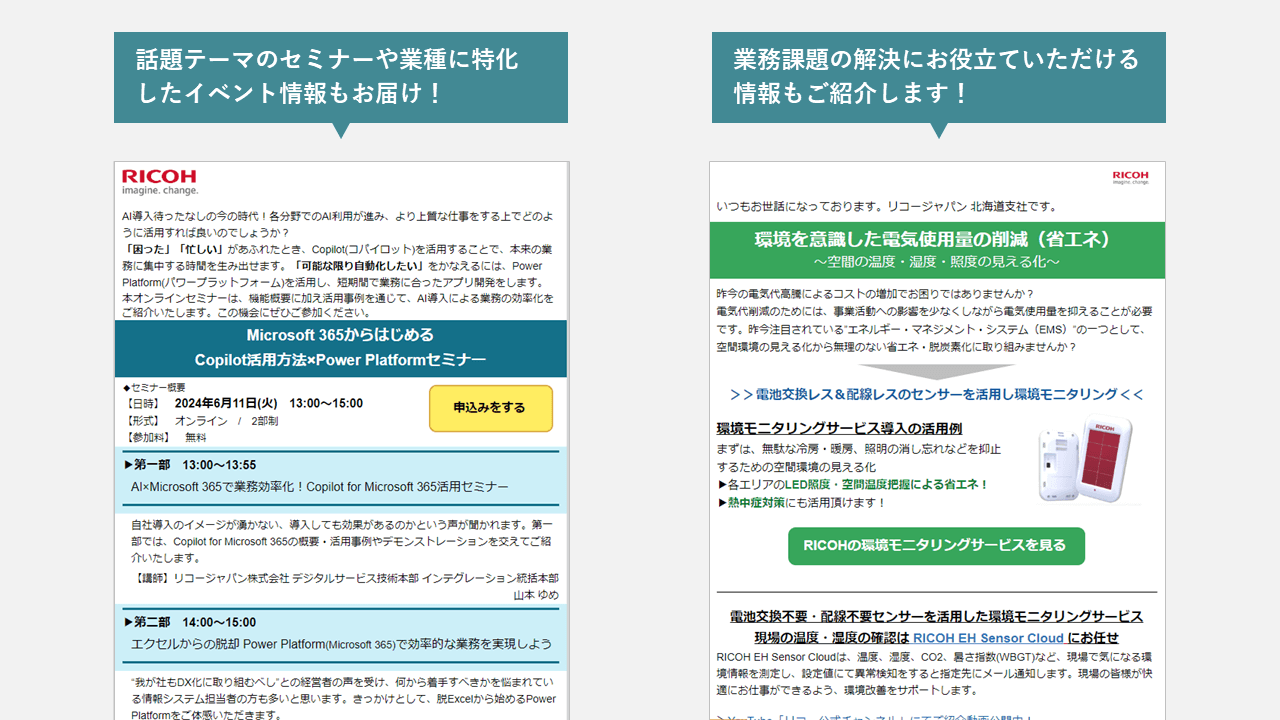 リコージャパン北海道支社がお届けするメールマガジンの登録フォームです。