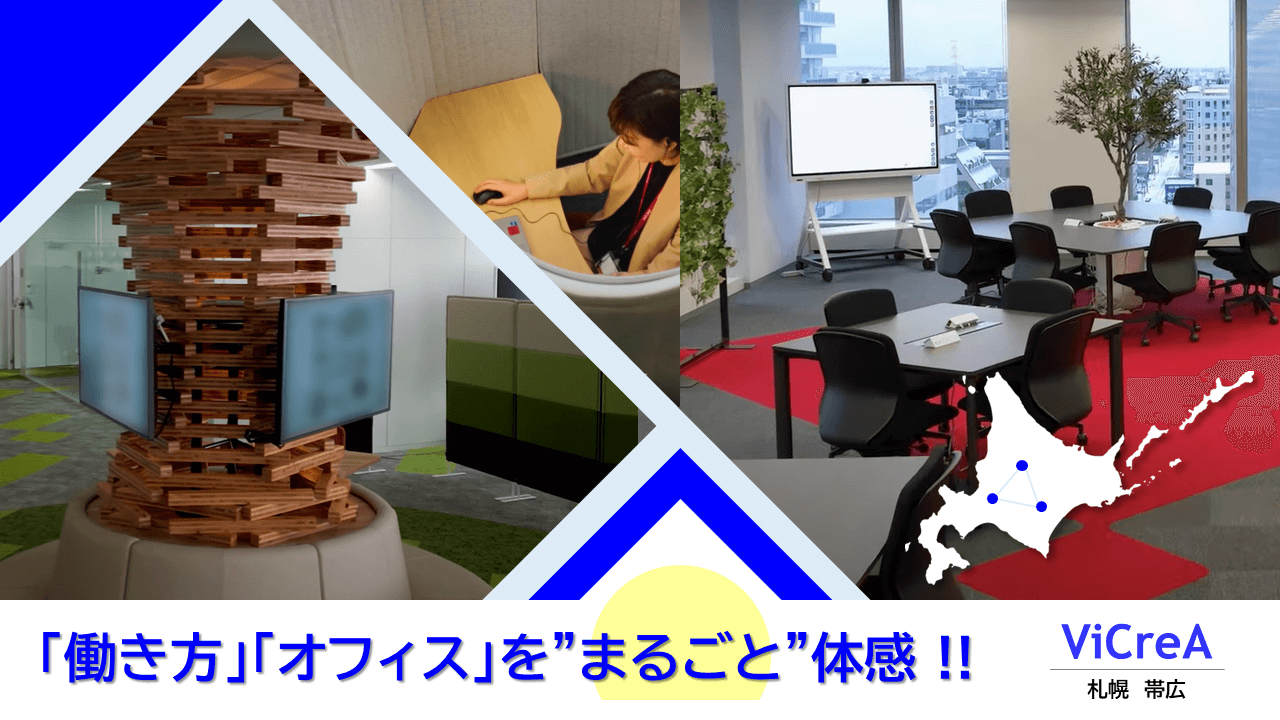 札幌・帯広の事業所では、私たちのワークスタイル変革へのチャレンジをご体感いただける、Live Office「ViCreA(ヴィクレア)」を併設しております。
