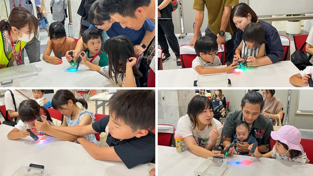 お子様とご家族が一緒に、光重ね実験の不思議について考えながら体験してくれました。