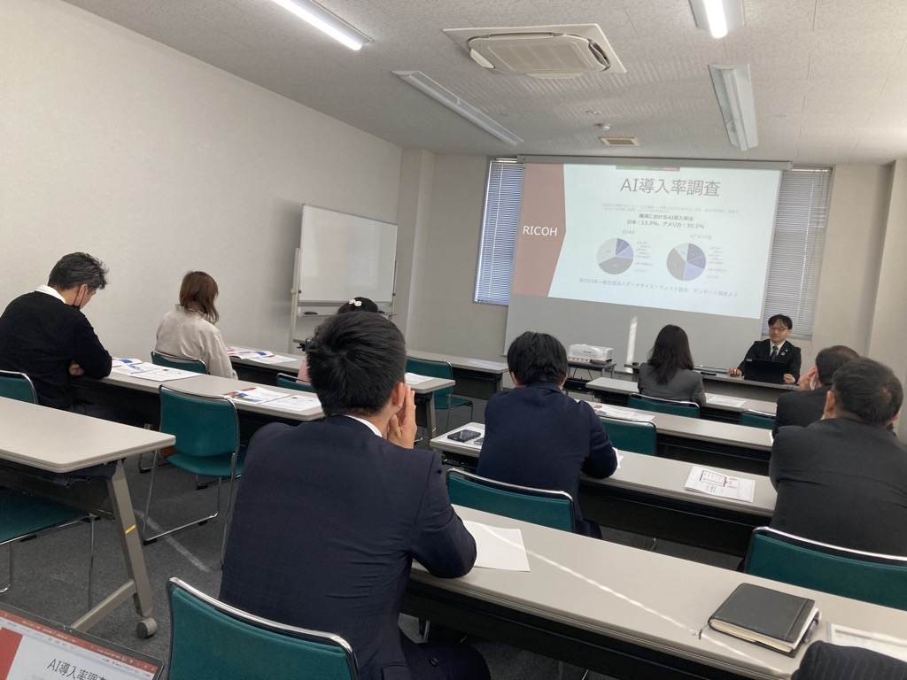 AIの概要説明とともに、生成AIを含めたリコーが取り組んでいるAI活用について事例を交えてご紹介しました。