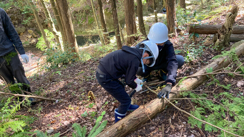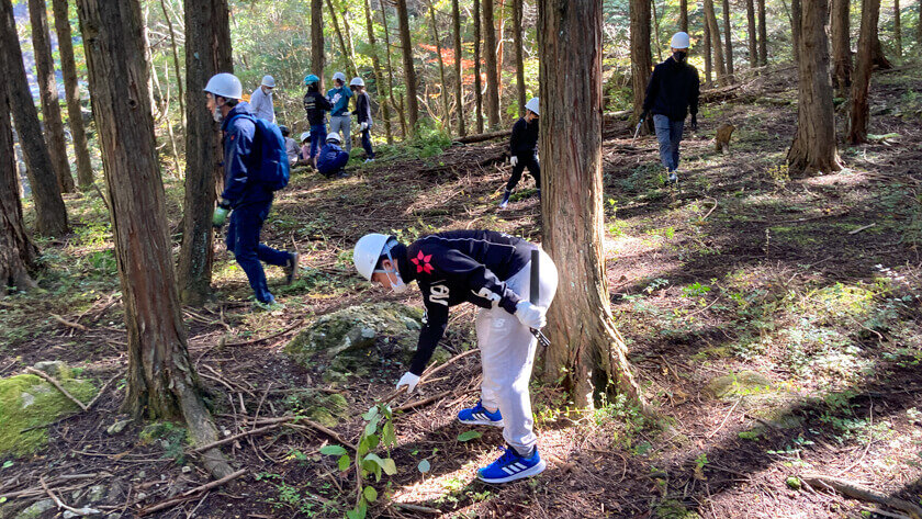 当日は、木の下部に生えている雑草などを刈り取る「下草刈り」をおこなったり、余分な枝や枯れた枝を切り落とす「枝打ち」をおこなったりと、森の環境保全に繋がる活動を実施しました。