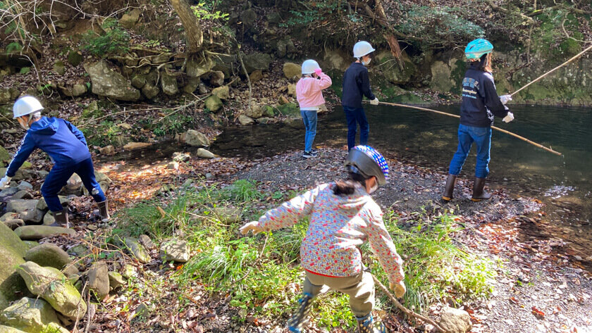 川も流れる自然豊かな森で子ども達も楽しんでます。
