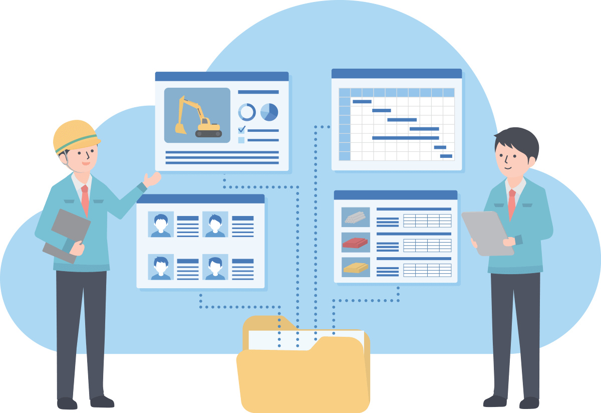 工事情報共有システムとは、従来紙やメールで行っていた受発注者間のやり取りを、インターネット上で効率的に行える仕組みです。