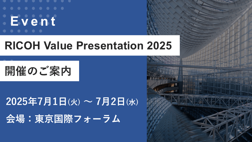 昨年オンラインにて開催しご好評をいただいたイベント「RICOH Value Presentation」を、本年はリアルの場で開催する運びとなりました。