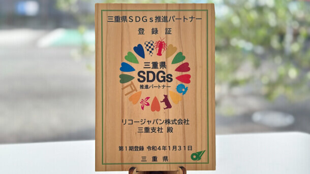 リコージャパンは事業とSDGsの同軸化(一体化)として、製品やサービスの提供が地域・社会貢献と認識し、社会課題解決に事業を通じて挑戦しており、三重支社は2022年1月より「三重県SDGs推進パートナー登録制度」に登録されています。
