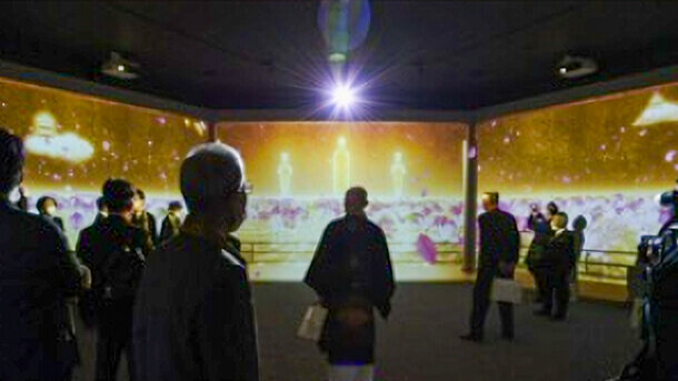 6面の壁に映像を投映した360度映像空間で「極楽浄土の世界」を表現、触れると雅楽が流れるなどのインタラクティブ演出も施したことで、映像への没入感を高めています。