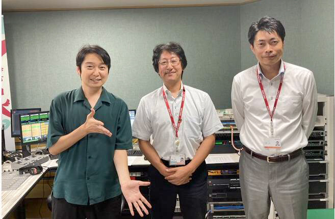三重エフエム放送株式会社スタジオにて撮影。左側は、アナウンサー代田さん