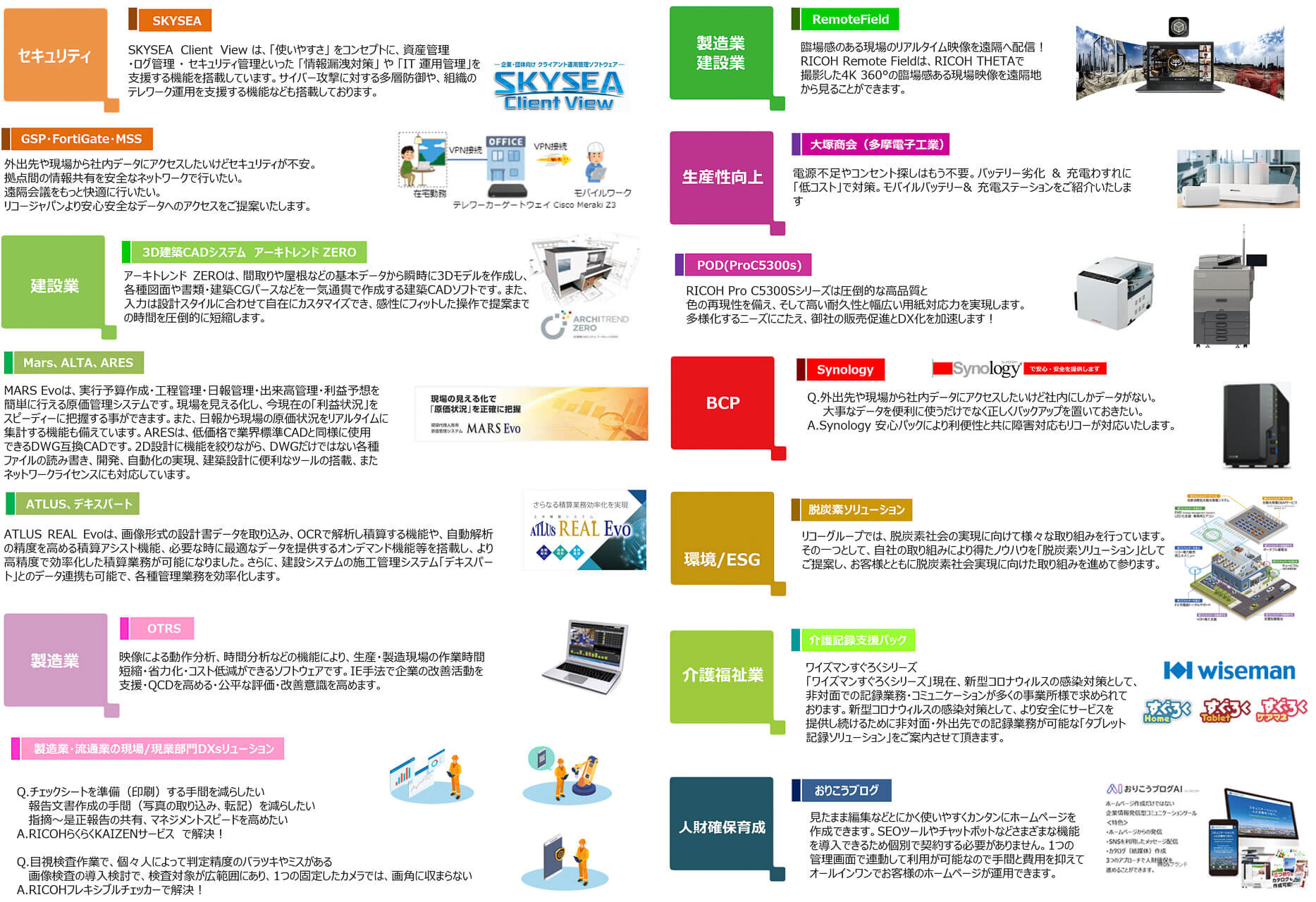 建設業、製造業、福祉・介護業などの業種や、DXやBCP対策、人財確保育成など、お困り事に合わせ様々な展示を行います。