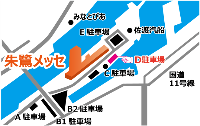 お車でお越しの方はD駐車場(101台:無料)にお停めください。